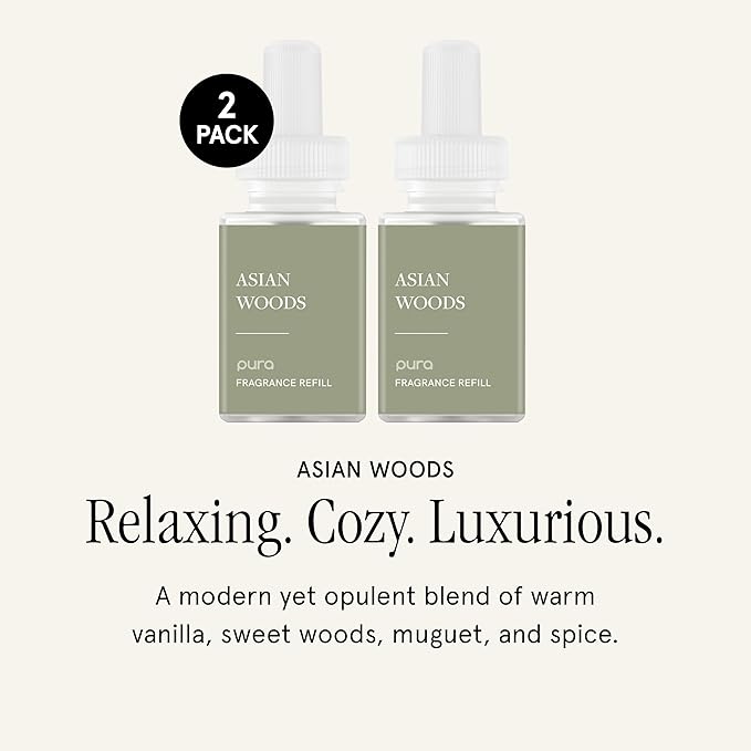 Pura Smart Home Air Diffuser Fragrance - Smart Home Scent Refill - Up to 120-Hours of Premium Fragrance per Refill - Clean Diffuser for Office & Apartment - 2 Pack, Asian Woods