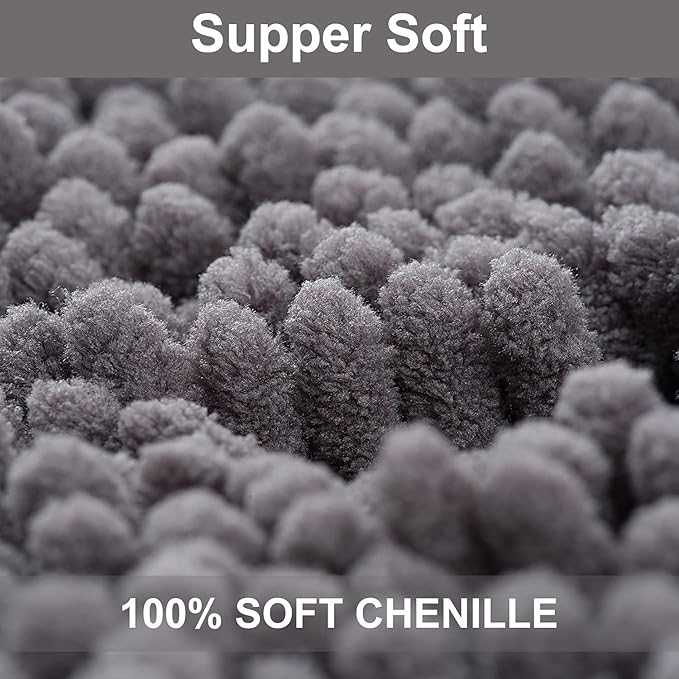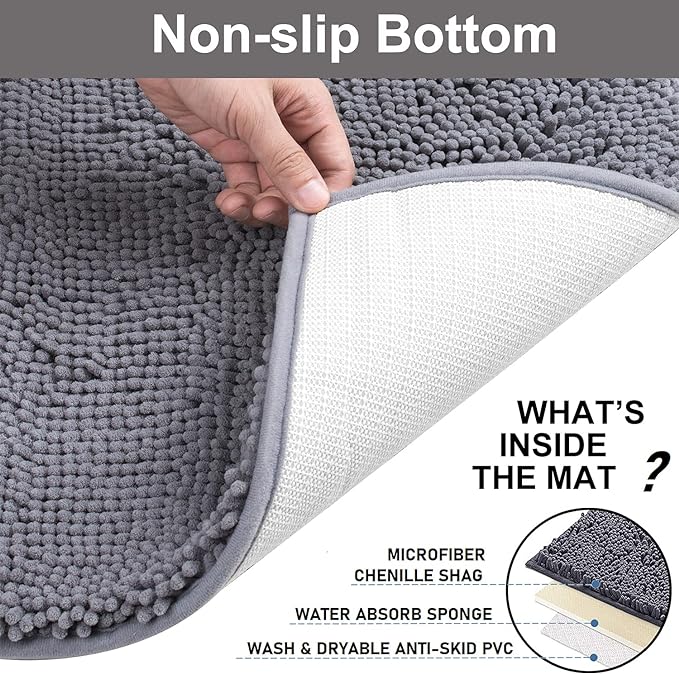 - ULTRA ABSORBENT- The mat is consist of 3 layers, the top layer is 1" long individual microfiber pile, which are made of thick Chenille fabric; the middle layer is sponge;the bottom is PVC mesh. With this high-quality construction, the bath rugs can help to absorb water in seconds.