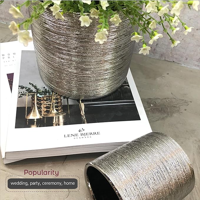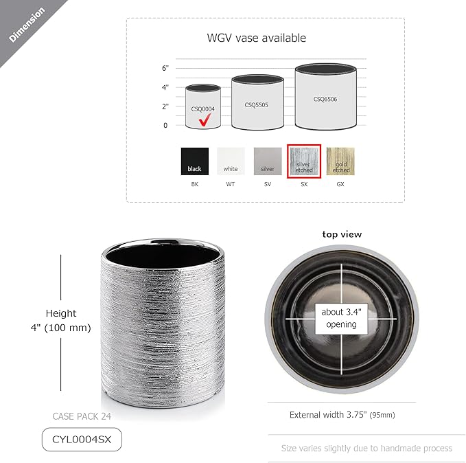 - Include: 1 Piece Silver etched Ceramic Cylinder carefully packaged, Vase Fillers and Flowers are Not Included.