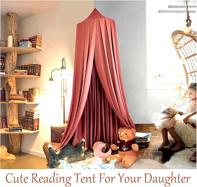 - KID'S SECRET GARDEN - Hanging on this princess reading nook canopy and it will smoothly go from your ceiling to the floor, with a cutest big round top and an easy-to-enter opening, creating a stunning fairy tale castle for your kids, they hide, nap, meet friends, form club and play inside, they are excited about the fascinating secret garden and happily invite little friends to visit their private castle tent. Can't wait to enjoy DIY decorating your own princess style room!