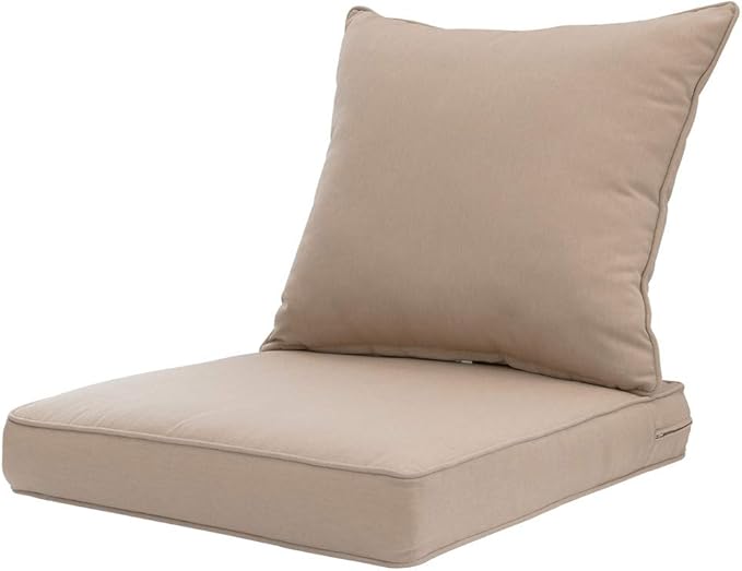 QILLOWAY Outdoor/Indoor Deep Seat Cushions for Patio Furniture, Lawn Chair Cushion 24 x 24 inch 1 Set, All Weather (Sand/Beige/Camel)