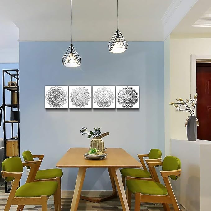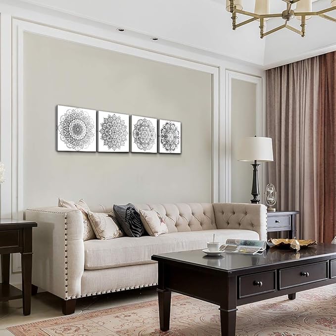 Black and white art Decorative pattern Canvas Wall Art for Living Room Bedroom wall decor Bathroom decorations,4 piece Modern Home decoration inspirational wall paintings Posters Pictures artwork