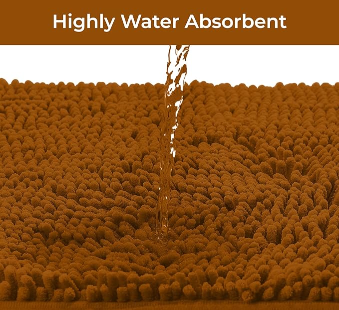 Bathroom Rugs Sets 2 Piece, Luxury Chenille Bath Mat Set, Soft Plush Anti-Slip Bath Rug + U-Shaped Toilet Mat. Microfiber Shaggy Carpet, Super Absorbent (24” x 36” & 20” x 24” U, Pumpkin)