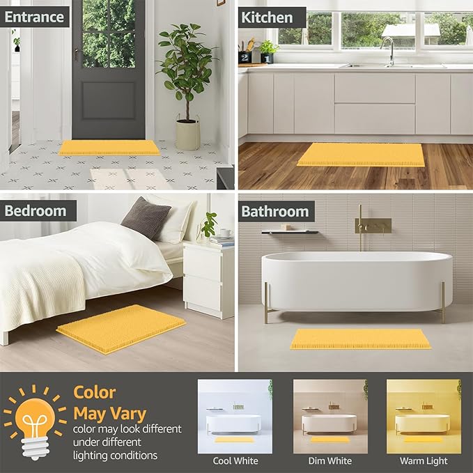Bathroom Rugs Sets 2 Piece, Luxury Chenille Bath Mat Set, Soft Plush Anti-Slip Bath Rug + U-Shaped Toilet Mat. Microfiber Shaggy Carpet, Super Absorbent (24” x 36” & 20” x 24” U, Yellow)