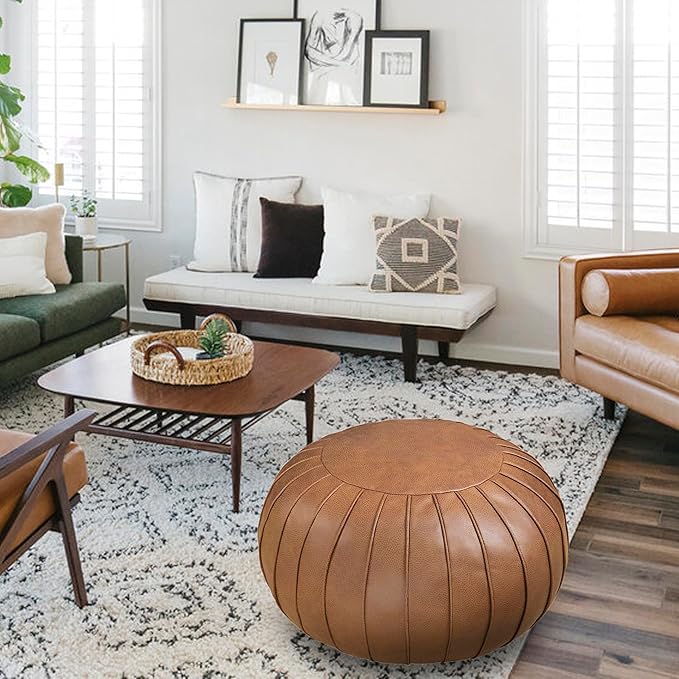 - TOUGH and DURABILITY: Made with high quality Faux Suede (Leath-Aire) , Raised stitching is more Three-dimensional. Thgonwid pouf is designed to hold 220 lbs., delivering outstanding comfort and withstand everyday use.
