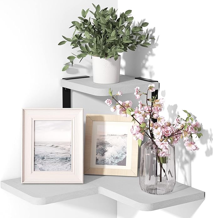 - Functional Display Shelf - Floating corner shelf mounted in living room, bedroom, kitchen and display photo frame, candle, vase, cups etc.