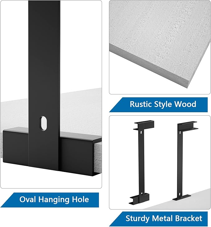 - Stylish Floating Shelf - Rustic real wood combines with black metal bracket, classic pairing in many occasions, fit European modern or rustic home style. (Not predrill holes on the wood)