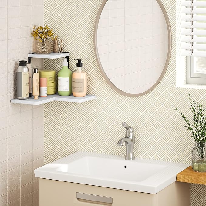 SRIWATANA Corner Shelf, Rustic Wood Wall Shelf Wall Mounted for Bedroom, Living Room, Kitchen, White