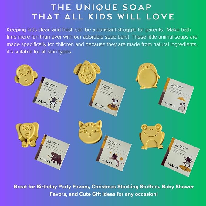- UNIQUE & SPECIAL GIFT IDEA: ZAAINA's natural, handmade soaps are perfect for kids, ideal for holiday stocking stuffers, baby shower favors, and birthday party favors. These home made soap bars add excitement to bath time with fun animal shapes like elephant, cat, monkey, penguin, frog, and dog.