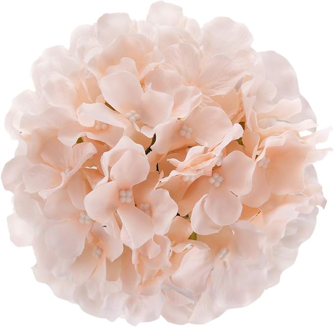 Flojery Silk Hydrangea Heads Artificial Flowers Heads with Stems for Home Wedding Decor,Pack of 10 (Blush)