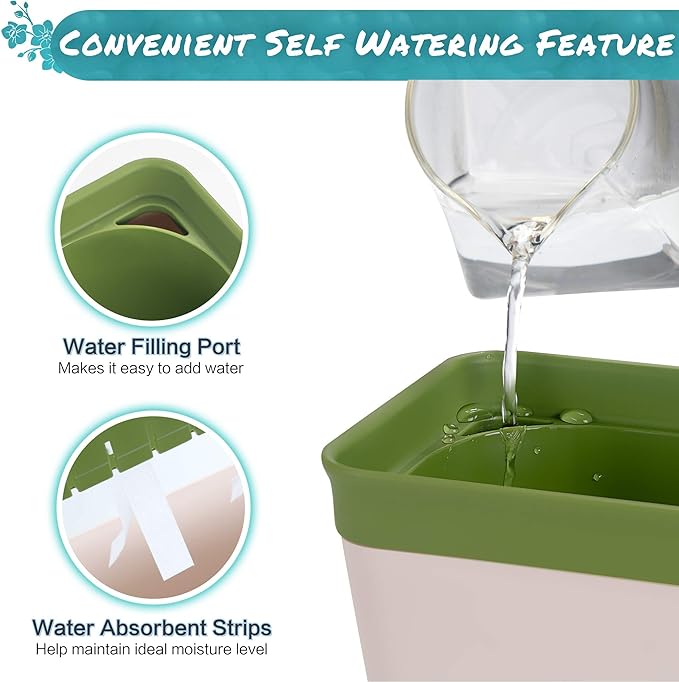 - Stylish and Durable Design - Our rectangular planters feature large water reservoirs and strings that help automatically hydrate your plant life to keep it going strong with hands-free support