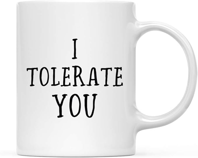 Andaz Press Valentine’s Day Funny 11oz. His Her Couples Coffee Mug Gift, I Tolerate You, 1-Pack, Gift Box