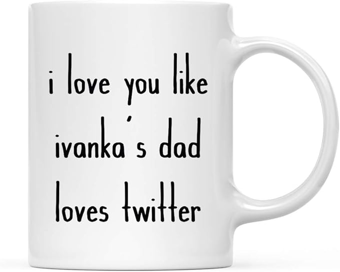 Andaz Press Valentine’s Day Funny 11oz. His Her Couples Coffee Mug Gift, I Love You Like Ivanka's Dad Loves Twitter, 1-Pack, Gift Box