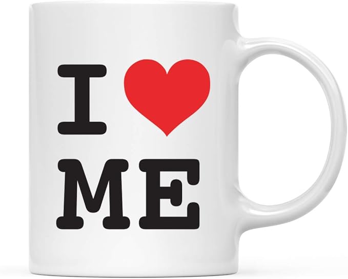 - Charming Heart Graphic And Fun Message I Love Me Cup Mug Design: Features the fun phrase "I Love Me" paired with a heart graphic design; a creative i love me coffee mug option that combines humor and charm; practical as an i heart mugs choice for gifting