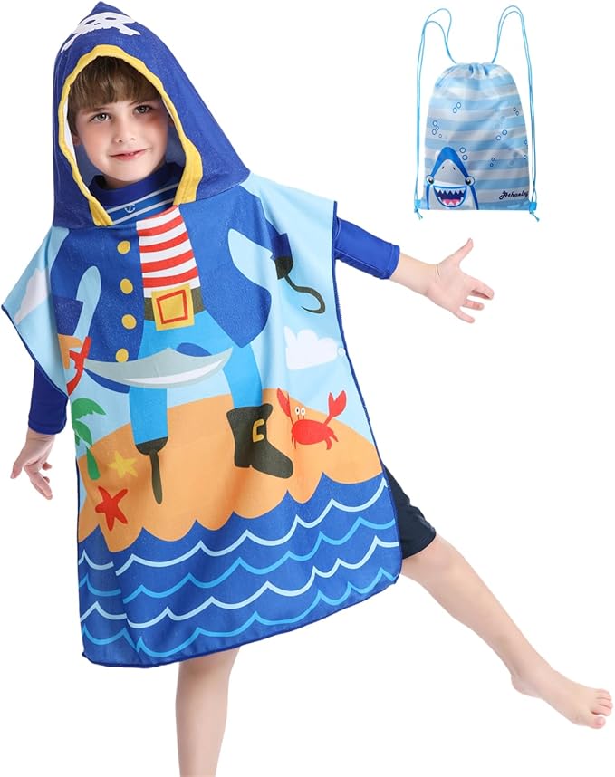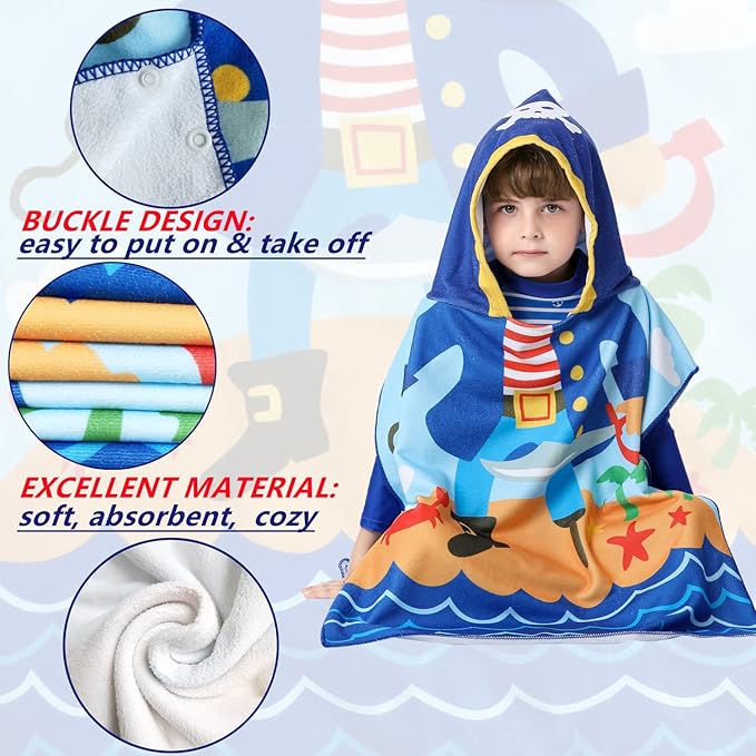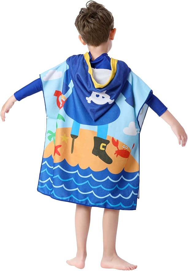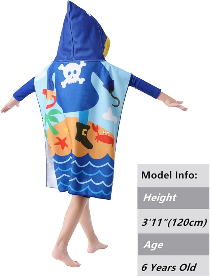 Children Hooded Beach Towel Toddler Boys Bath/Pool/Swim Poncho Cover-ups Swimwear, Pirate Theme
