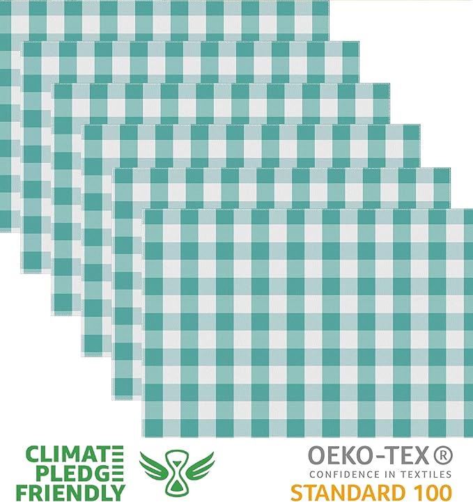 Urban VillaPlacemats for Dining Table 100% Cotton Placemats 14''x20'' Over Sized Tablemats Set of 6 Placemats Aqua/White Color Buffalo Check Tablemats for Family Dinners Wedding PartiesPlacemats