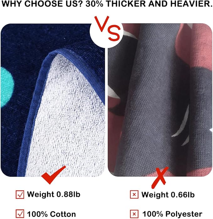 - ?Premium Material 100% Cotton ?Wowelife bath towel is made of 100% cotton, the quick dry beach towel is soft and breathable. Children with delicate skin can also be used with complete confidence. High quality fabric increases the durability of the toddler bath towel. Fade-resistant & no lint, eco-friendly material of UPF50+ rating and national 4.0-8.5 standard.