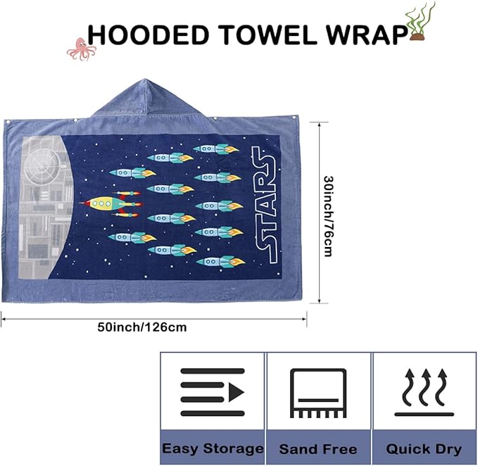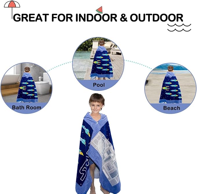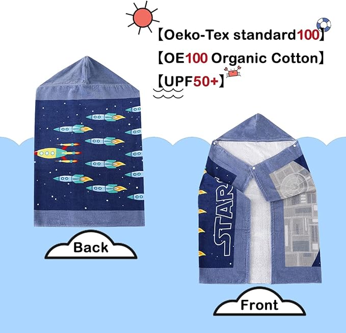 - ?Super Absorbent & Machine Washable??The beach towel for kids is extremely absorbent. The cotton bath towel will quickly absorb the moisture on kid's body surface to keep him warm. Avoid kids getting sick from the water. Make sure kids enjoy fun and safety with our hooded towels for kids. Washing method: Machine washable and gentle cycle.