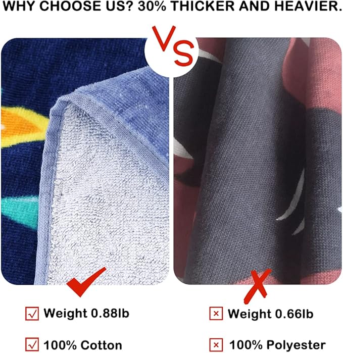 - ?Premium Material 100% Cotton ?Wowelife bath towel is made of 100% cotton, the quick dry beach towel is soft and breathable. Children with delicate skin can also be used with complete confidence. High quality fabric increases the durability of the toddler bath towel. Fade-resistant & no lint, eco-friendly material of UPF50+ rating and national 4.0-8.5 standard.