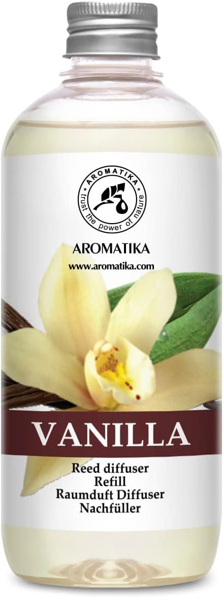 Vanilla Diffuser Refill w/Natural Essential Vanilla Oil 17 Fl Oz - Intensive - Fresh & Long Lasting Fragrance - Reed Diffuser Oil - Best for Aromatherapy - SPA - Home - Office - Fitness Club
