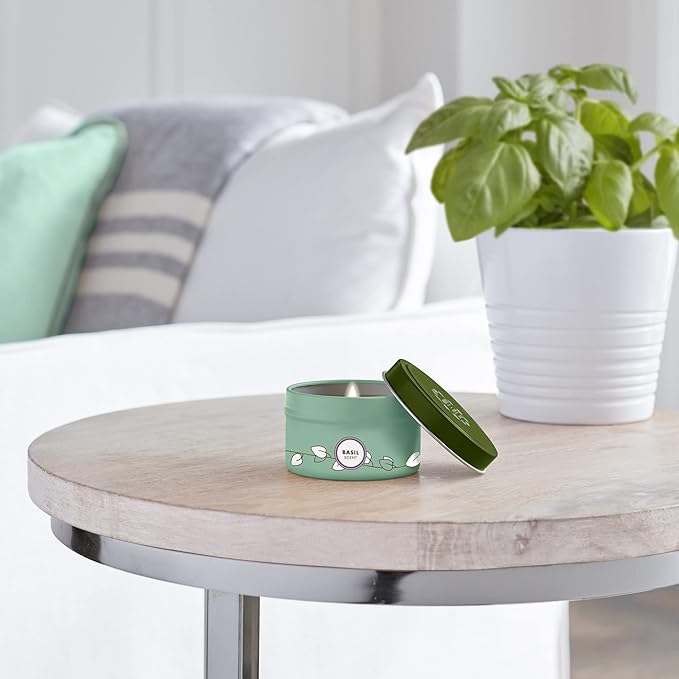 - What�s cleverly contained in our Basil Tin Candle? The cool, crisp, garden-inspired scent of basil