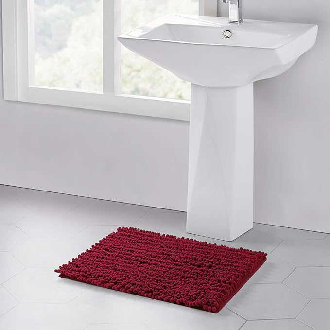 Walensee Bathroom Rug Non Slip Bath Mat (24x17 Inch Red) Water Absorbent Super Soft Shaggy Chenille Machine Washable Dry Extra Thick Perfect Absorbant Best Small Plush Carpet for Shower Floor