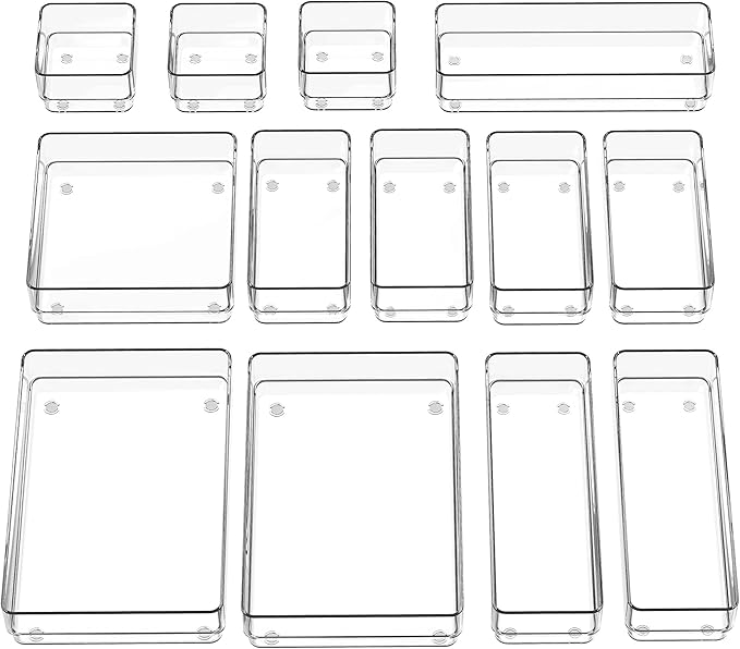- Multiple Sizes - 5 different sizes and 13 pieces trays offer you customize combinations to store stuff and organize drawer for your specific needs. Size: 8.9 x 5.9 x 1.9 inches (2 pack), 8.9 x 3.0 x 1.9 inches(3 pack), 5.9 x 5.9 x 1.9 inches(1 pack), 5.9 x 3.0 x 1.9 inches(4 pack), 3.0 x 3.0 x 1.9 inches(3 pack).