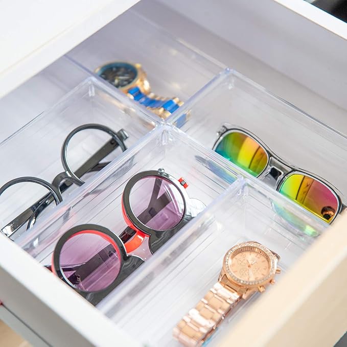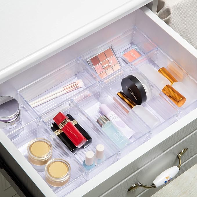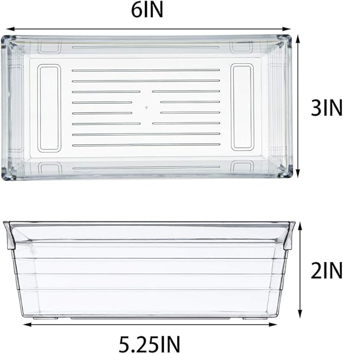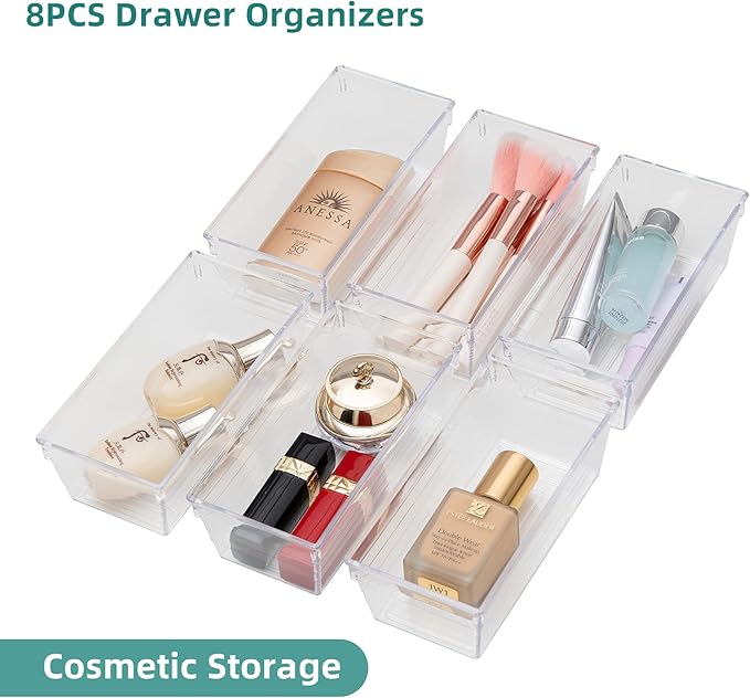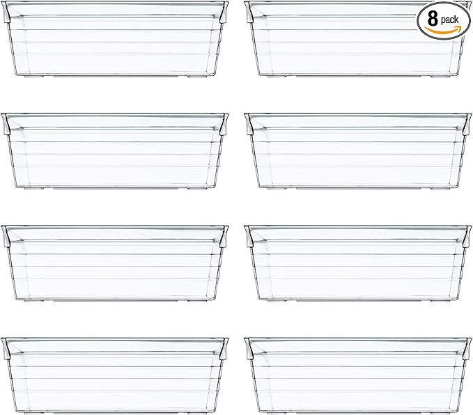 Backerysupply Clear Plastic Drawer Organizer Tray for Vanity Cabinet (6"×3"×2" Set of 8) Storage Tray for Makeup, Kitchen Jewelries and Gadgets