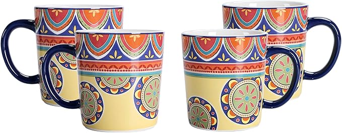 Bico Tunisian Ceramic Mugs, Set of 4, for Coffee, Tea, Drinks, Microwave & Dishwasher Safe