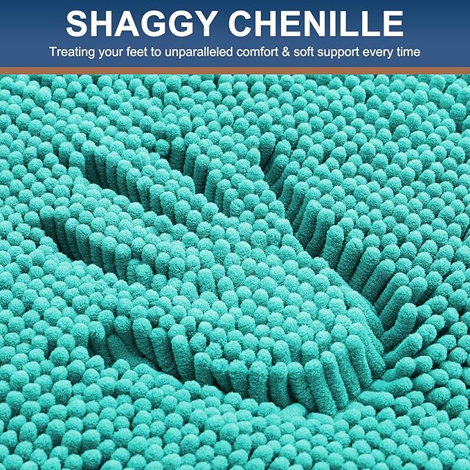 Smiry Luxury Chenille Bathroom Rugs 47x24, Extra Soft and Absorbent Shaggy Bath Mat, Machine Washable, Non-Slip Plush Carpet Runner for Tub, Shower, and Floor, Home Decor Accessories, Turquoise