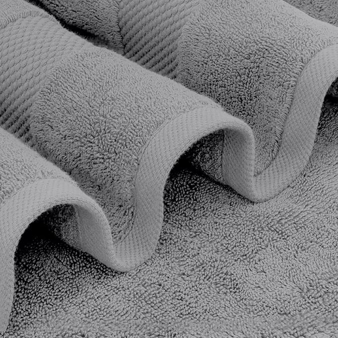 White Classic Luxury Bath Towels Set of 4 Large - 700 GSM Cotton Ultra Soft Bath Towels 27x54 | Highly Absorbent and Quick Dry | Hotel Towels for Bathroom Luxury, Plush Shower Towels, Light Grey