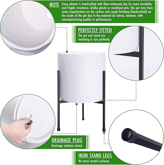 - Complete Set: The set includes the pot with drainage hole, metal stand, mesh net, rubber plug, ceramic balls filler, and drainage cup for easy setup.