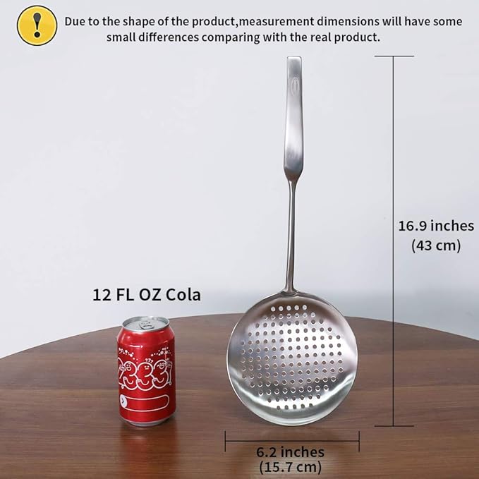 - Quick separation of hot oil or boiling water. Perfect for your favorite french fries, poached eggs, vegetables, meat, wonton, etc. It doesn't dissolve like plastic in hot oil. When scooping up the food, it is easy to let the liquid flow out.