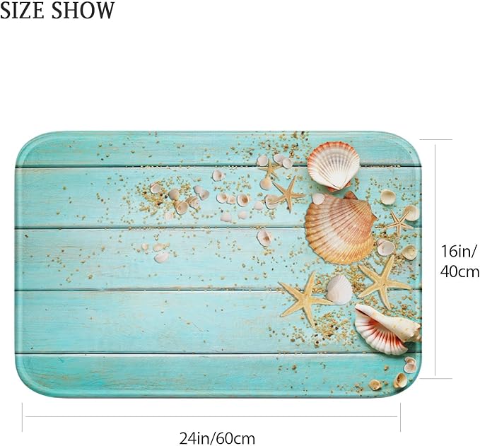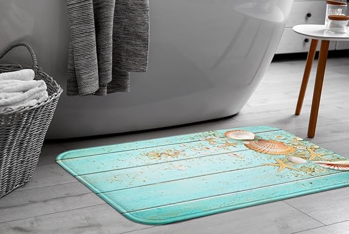 Britimes Bath Mat for Bathroom, Beach Shell Sea Collection Vintage Boho Washable Cover Floor Rug Carpets Floor Mat Bathroom Decorations 16x24 Inches for Kitchen Bedroom