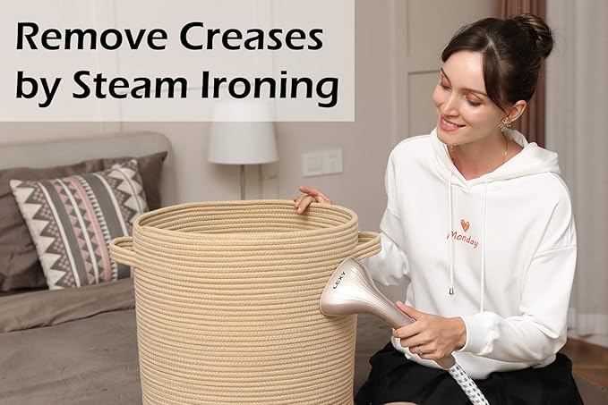 - Effortless Convenience: These generously-sized woven storage baskets are foldable, space-saving, and feature handles for convenience. Fold them when not in use or for travel. Note: Packaging creases can be smoothed out by filling the basket with larger items.