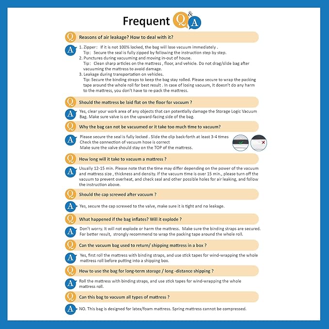 - Leakproof & Sealable: Our mattress space bag adopts premium grade PA+PE material, which prevents punctures and serves as mattress protector from air, dust, dirt.