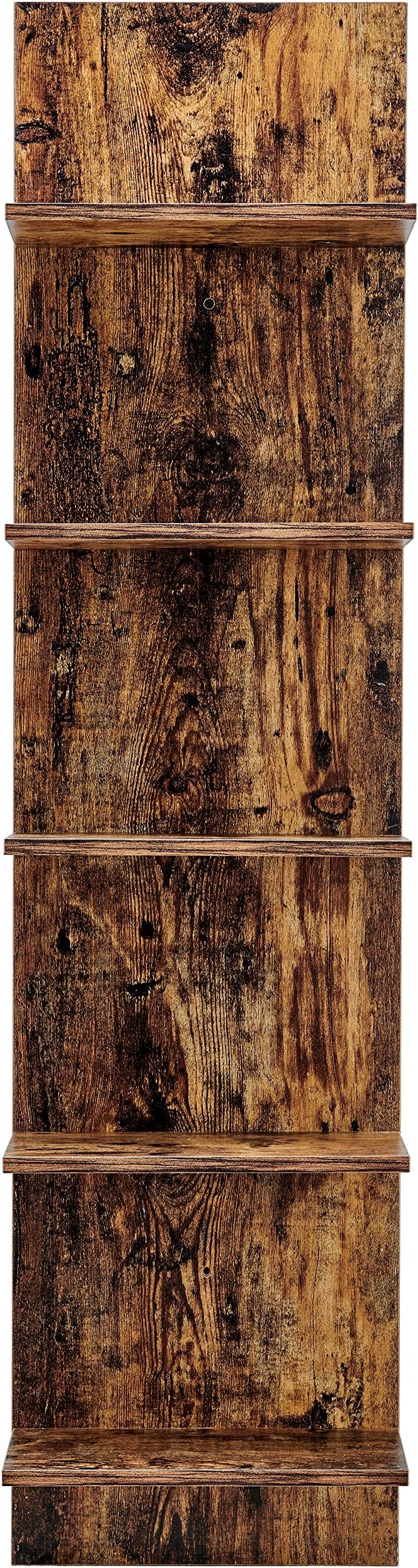 Danya B. Narrow Decorative Wall Mount Vertical Shelving Unit – Modern Column with 5 Shelves Home or Office for Books, Décor Display (Pine)