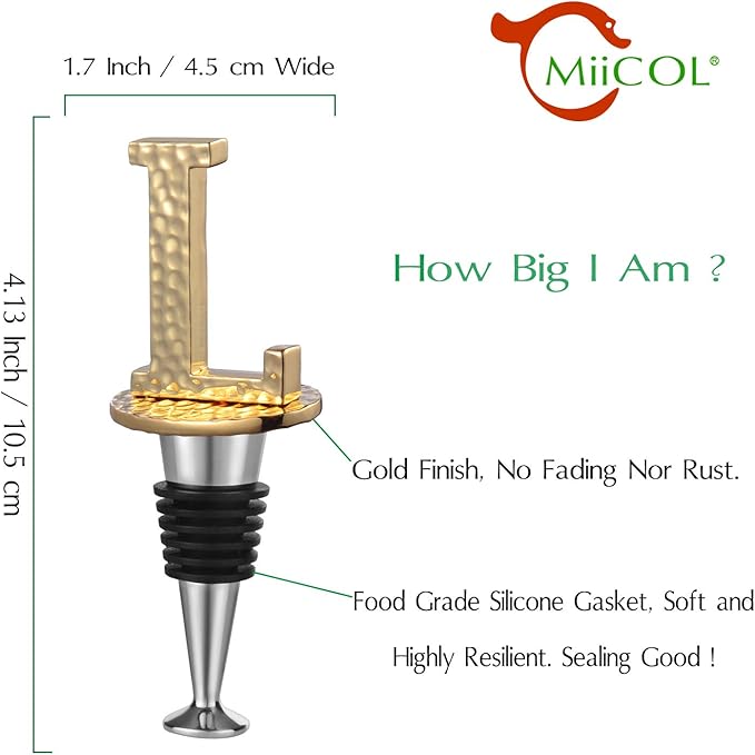 - Fashionable and Practical - The MiiCol wine stopper features a stylish design with personalized initials, adding a pop of color to any table setting. Its distinctive lettering helps identify different wines or owners, making it an ideal gift for special occasions.