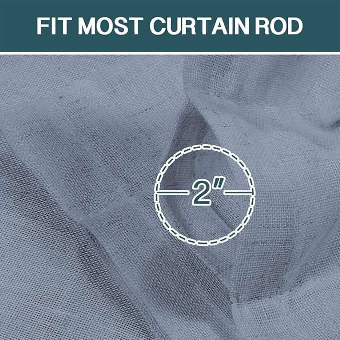 - WELL MADE: Sold by pair. Set includes 2 linen panels - Panel measures: 52" x 84" | Set measures: 104" x 84". Pole top rod pocket design allows for simple slide-through installation on curtain rods up to 2" in diameter. Recommend ordering 2 to 3 times rod width for proper look and fullness