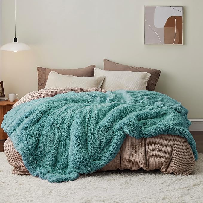 Bedsure Fluffy Green Blankets Queen Size for Bed, Thick Sherpa Faux Fur Fleece Fuzzy Plush Winter Warm Heavy Soft Full Queen Blankets, Bedroom Decor Green Gifts Cozy Gifts for Women Men, 90x90