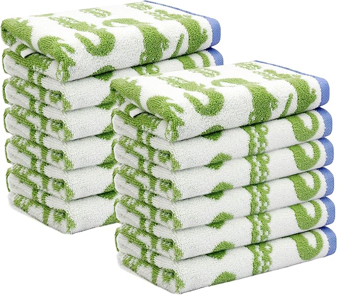 - SET CONTAINS: Twelve (12) ORIGINAL KIDS- Kids Crocodile Wash Cloths in Green/White, each measuring 12x12 Inch