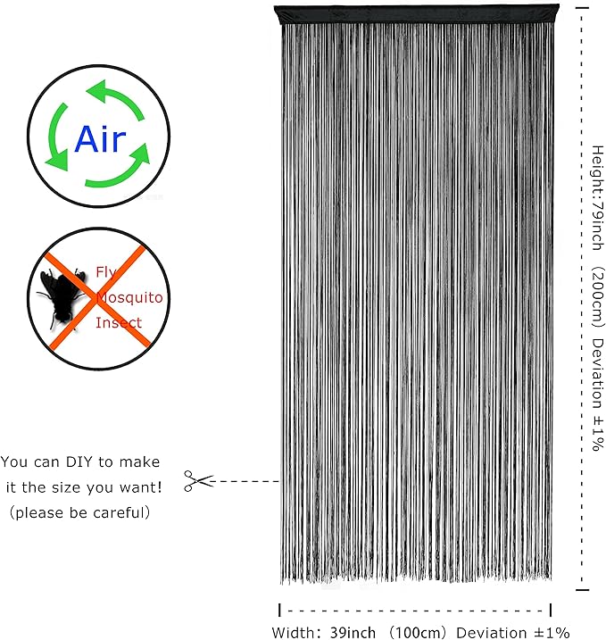 Doorway String Curtain Door Curtains,Boho Hippie Hanging Patio Tassels Screen Room Decor Bedroom Wall Window Closet Kitchen Living Room Fringe Divider Panel Laundry Room(39×79in/100×200cm, Black)
