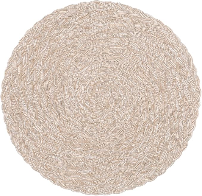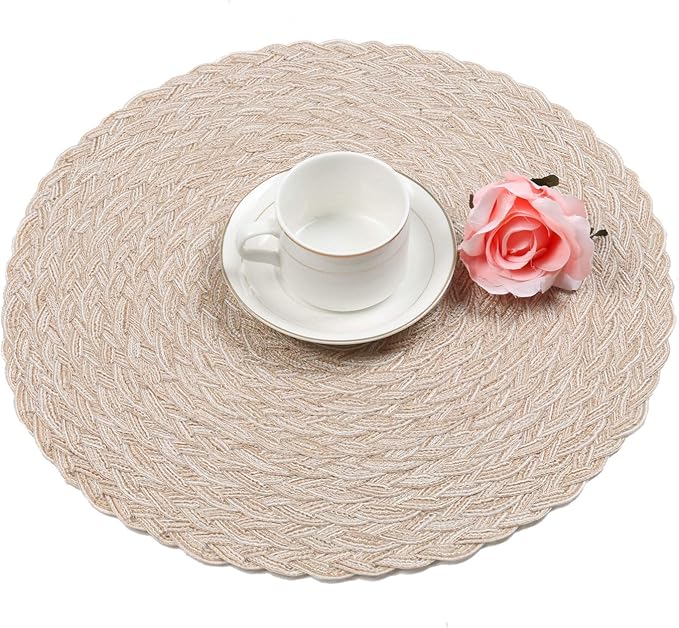 SHACOS Round Braided Placemats 15 inch Set of 4 Boho Woven Washable Kitchen Table Placemats for Home Wedding Party (T-Beige, 4)