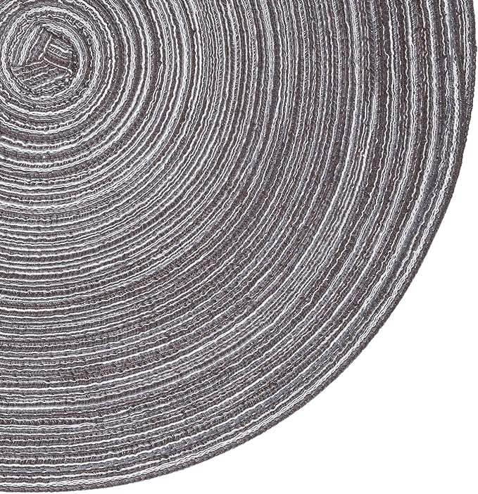 SHACOS Round Braided Placemats Set of 8 Round Table Mats for Dining Tables Non Slip Washable (Black Grey, 8)