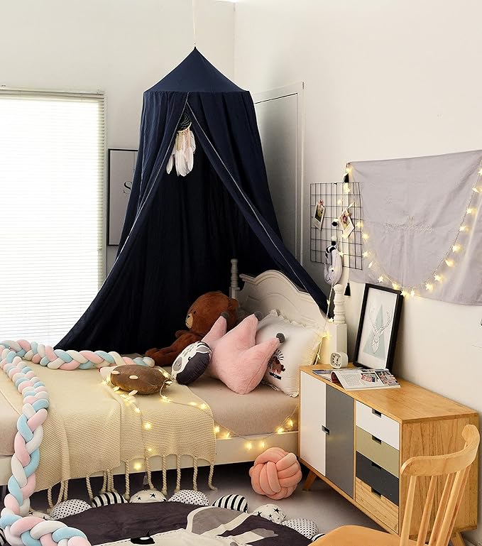 Mengersi Bed Canopy Play Tent for Kids, Round Dome Kids Mosquito Net Indoor Outdoor Castle Hanging House Decoration Reading Nook (Dark Blue)