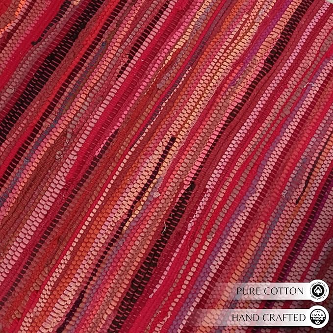 Rug Area Rugs Cotton Red 24x36 Inches Multicolour Chindi for Livingroom Bedroom Washable RagRug Reversible Farmhouse Kitchen RunnerRug Carpet Area Runner Mat for Hallway, Entryway
