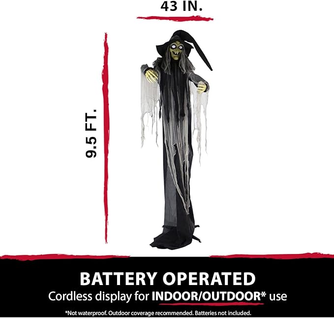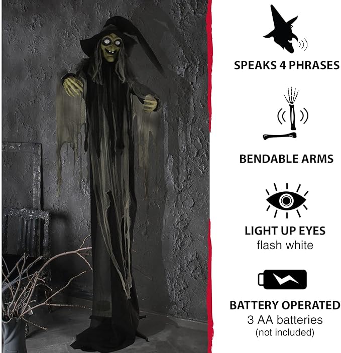 - Multi-Function Animated Props for Halloween: Creepy and scary; This sorceress lights up and has sound; She will turn your home into a haunted house in no time; Line up or hang multiple witches for an eerie graveyard look