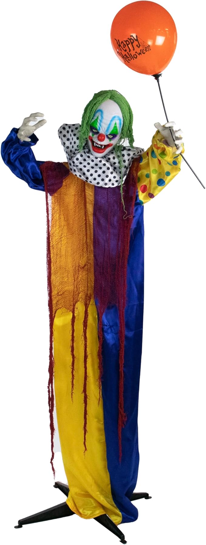Haunted Hill Farm Life-Size Scary Talking Clown Halloween Animatronic with Motion and Touch Activated Lights and Sounds, Battery Operated Indoor or Covered Outdoor Creepy Halloween Decorations