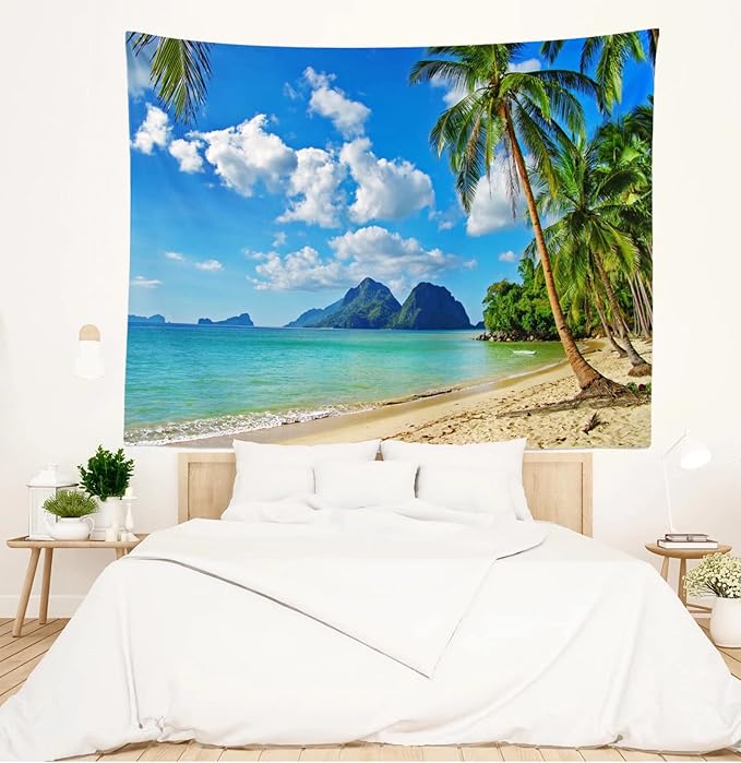 - Use & Care:This tropical beach tapestry is lightweight and can be easily secured with thumbtacks. Hand and machine washable, and for shipping creases can be removed with a dryer or garment steamer.