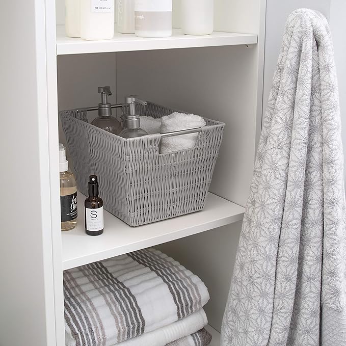 Simplify 12"x10"x8" Medium Woven Basket for Storage with Handles, Nursery, Playroom, Toys, Bedroom, Closet, Clothes, Office, Decorative Organizer Rattan Totes, Grey
